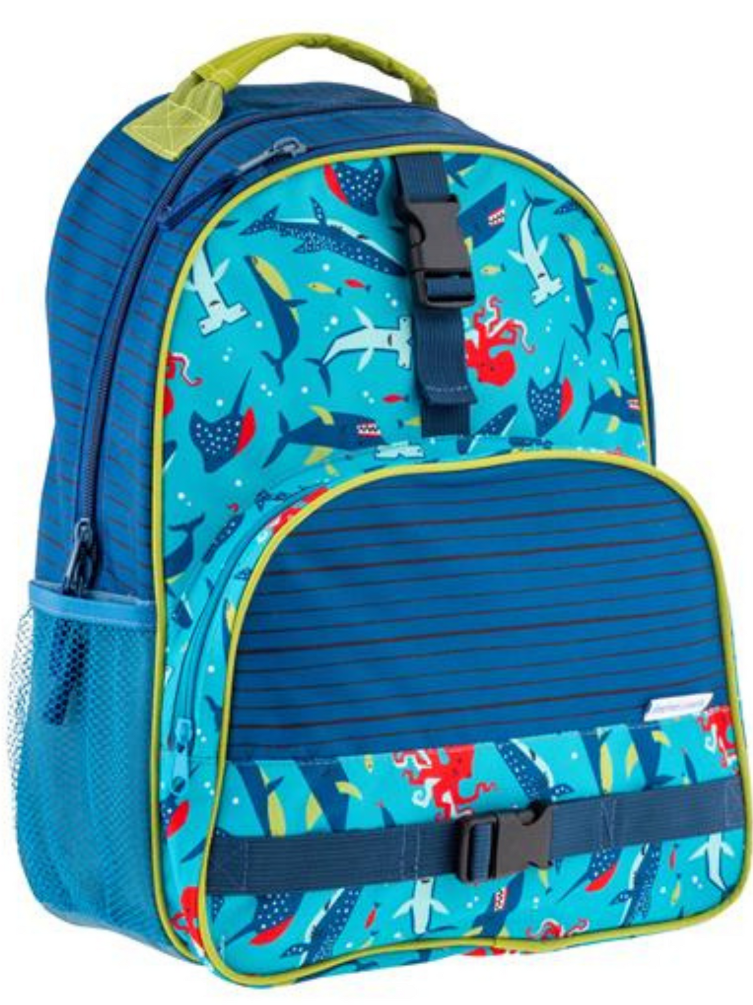 Fun and functional, kids will be “all over” the Stephen Joseph All Over Print Backpack. Perfectly sized for school age kids, these bags are large enough to carry your children’s school books and required day-to-day school supplies and still leave room for a change of clothes for playtime after class. All Over Print Backpacks are durable enough that they also make for a great summer camp or sports bag. This backpack has many of the same features found on adult size bags– three storage compartments, padded and adjustable shoulder straps for comfort, double sided mesh water bottle pockets, two outside hook-on straps, and an inside elastic pocket with name tag. Be sure to gear up with the matching Stephen Joseph All Over Print Lunchboxes. Want to make it even more individual? Then why not personalize it with your child’s initials or name?